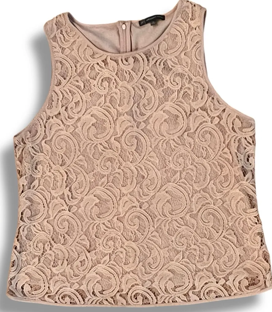 Beautiful lace overlay sleeveless top by Adrianna Papell. Round neck. Perfect for a wedding or busin... Show more