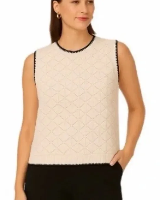 EUC Sleeveless Sweater Crewneck Stretch Knit Textured diamond pattern Viscose, polyester, and nylon... Show more