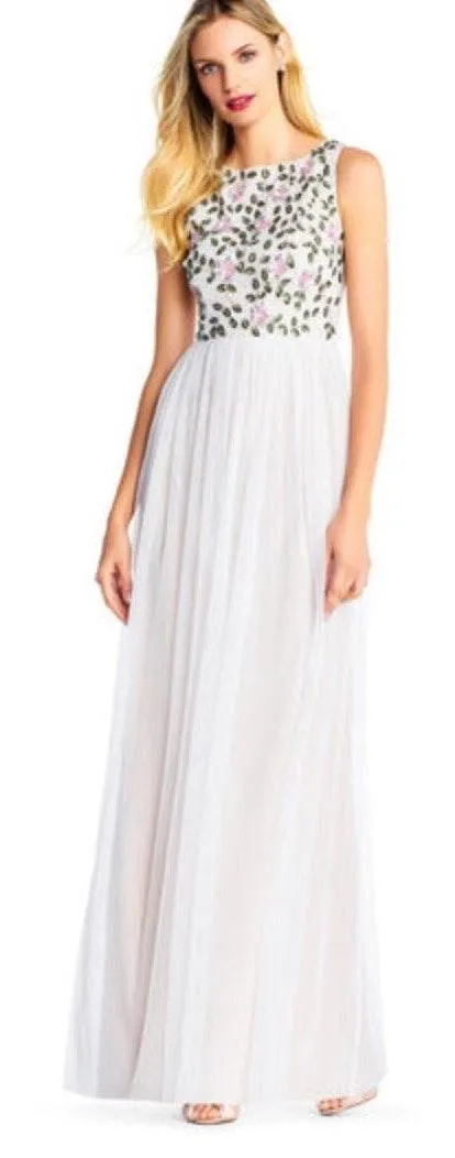 Adrianna papell Tulle Grown with Romantic Floral Beading Us 4 Uk 8 NWT retails 199$ plus tax .