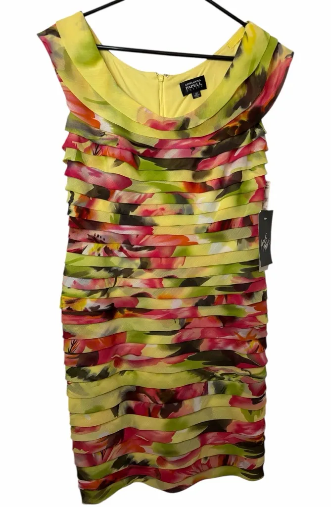Adrianna Papell Vibrant Tiered Floral Midi Cocktail Dress NWT Yellow Size 12P - $54 New With Tags - From Shannon