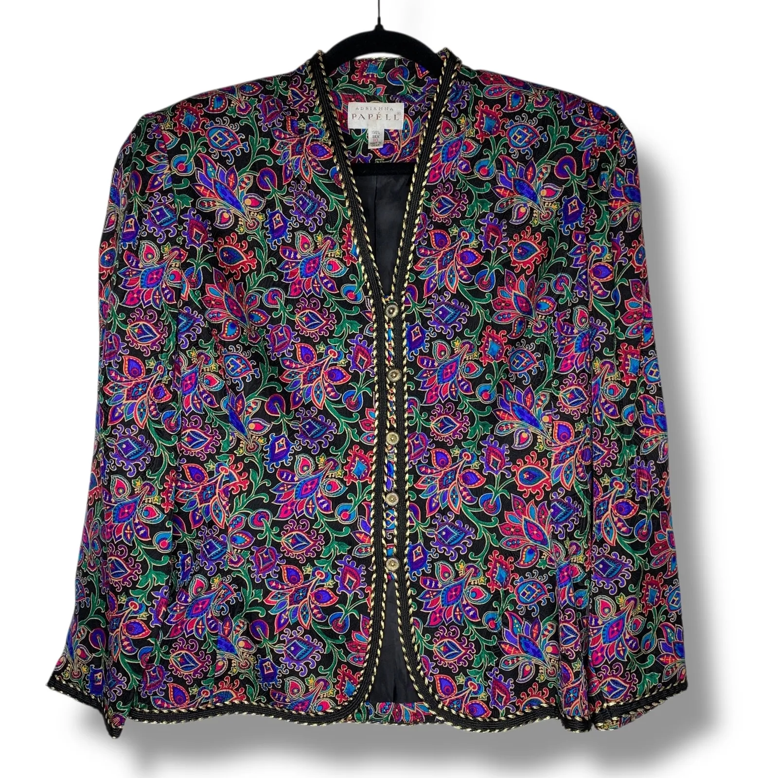 Vintage Adrianna Pappell 100% SIlk Jacket Paisley Pattern Jewel Tones Size 10 Excellent preowned co... Show more