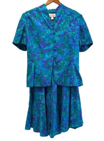 Adrianna Papell Vintage Skirt Set. 100% silk. Short sleeve covered button top and side zip midi sk... Show more