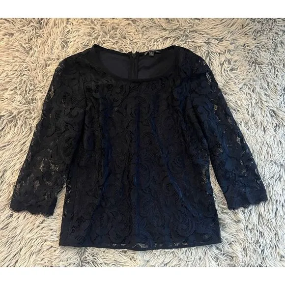 Adrianna Papell Womens Round Neck Lace 3/4 Sleeve Lace Top Blue Size S.. Condition is Pre-owned. Shi... Show more