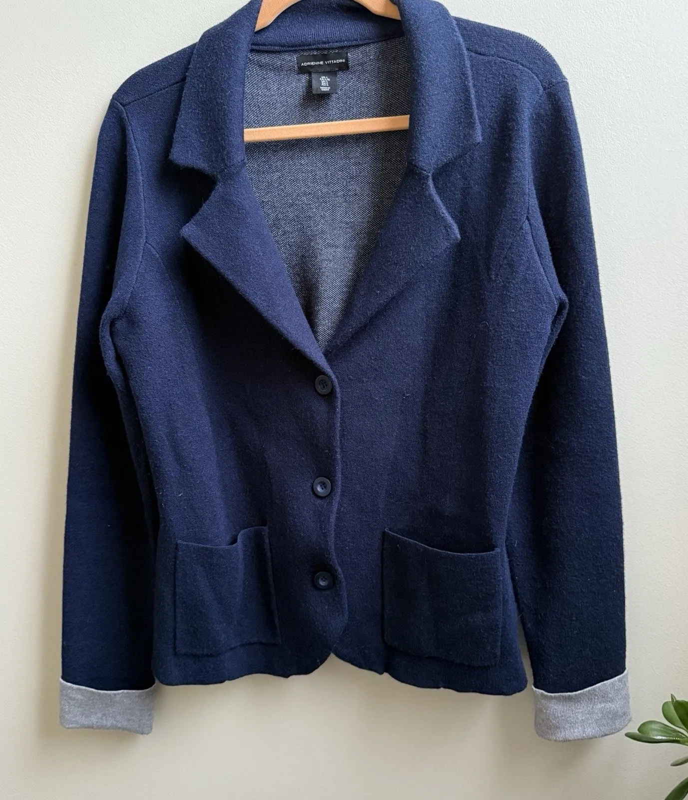 Adrienne Vittadini Women’s Navy Knit Blazer Cardigan Jacket Casual Work Size L Blue Size L - $22 - From Lace