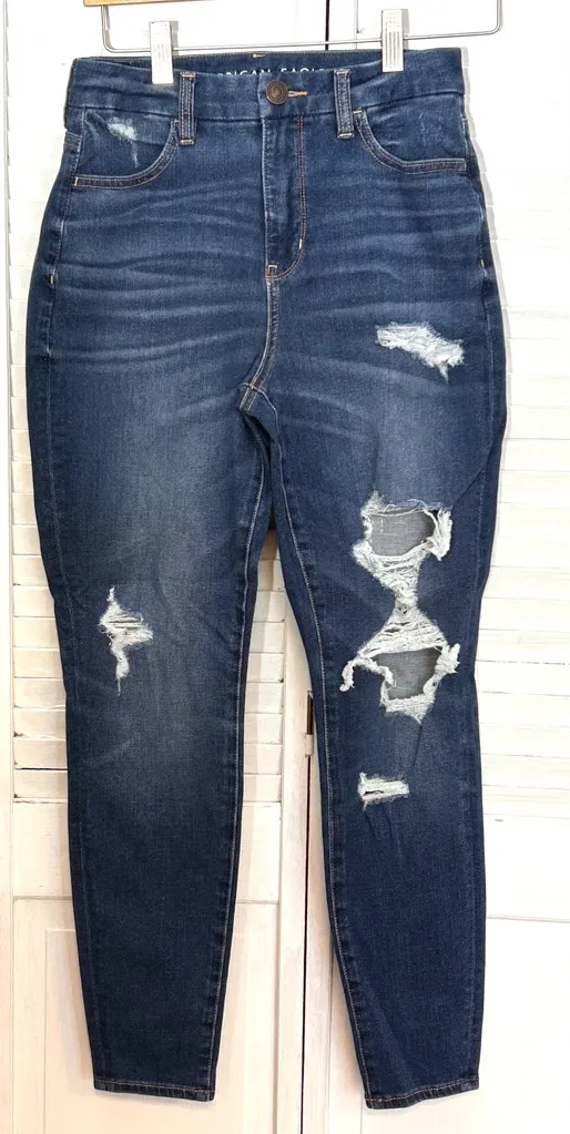 AE’s Dream Jean! Size 2 short Curvy high rise jeggings Factory distressed Comfortable stretch Wor... Show more
