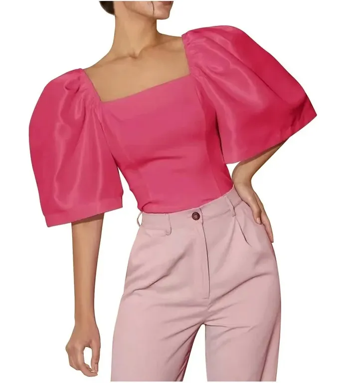 AEL Amy‎ Enjoy Life Square Neck Puff Sleeve Crop Top Pink NWT Size XS - $27 New With Tags - From Asia