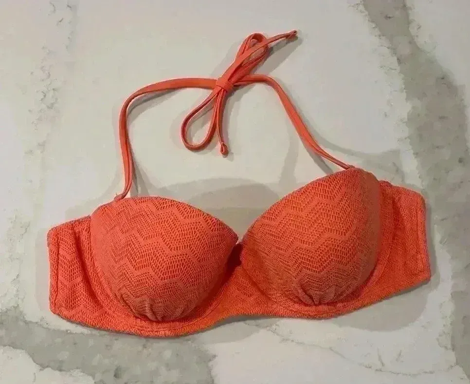 Aerie Audrey Padded Push Up Underwire Bandeau Style Swim Bikini Top Orange Crochet Women’s 36C In go... Show more