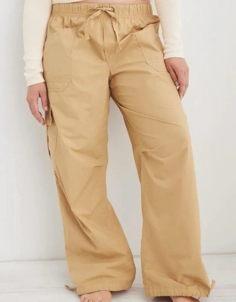 Aerie Avenue Baggy Wide Leg Cargo Pant Color Field Khaki Size Medium Lightweight, comfy poplin... Show more