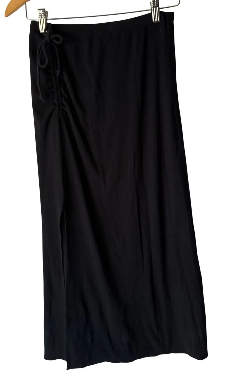 Aerie Black Ribbed Side Ruched Midi Skirt Slit S Casul Going Out School Grunge Measurements: • Wais... Show more