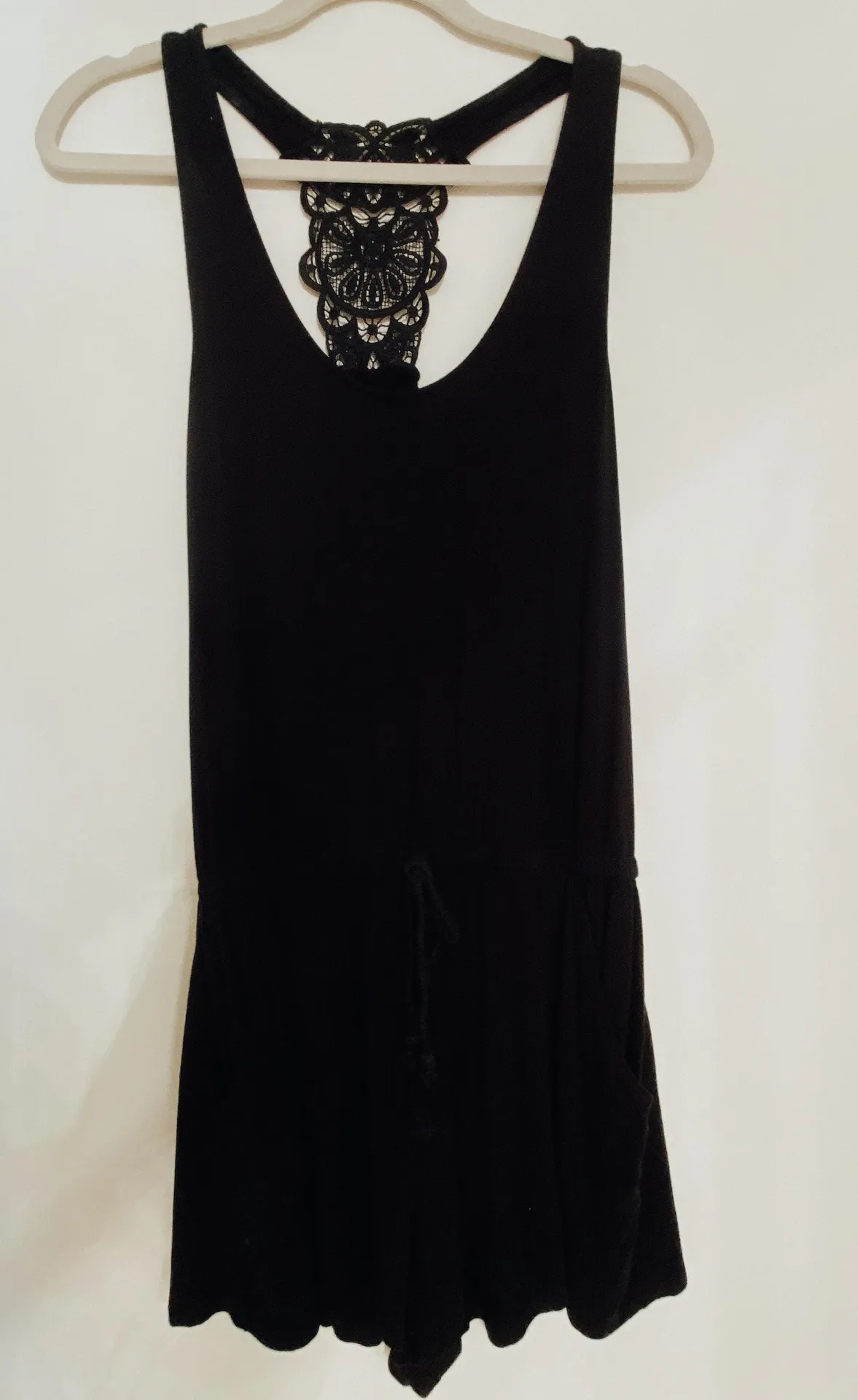 Super soft and stretchy black romper from aerie! Cute lace back, can dress it up or lounge around. O... Show more