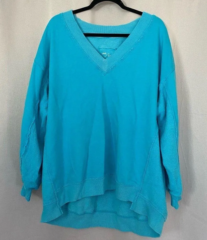 Stylish blue V-neck sweater. Perfect for casual wear. Aerie size large oversized Middle of the sweat... Show more