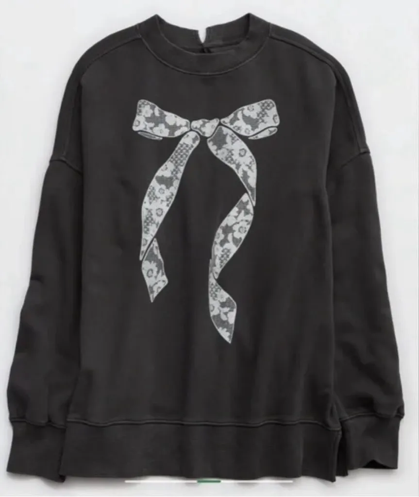 Aerie Bow Sweatshirt with Little Pearl Clasp in the back Black Size M - $40 - From Arlen