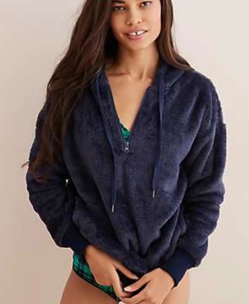 Aerie Cozy Quarter Zip Teddy Sherpa Fleece Pullover Hoodie in Navy Blue in great preowned condition,... Show more