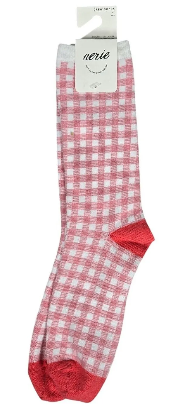 Aerie Crew Socks Red White Gingham Plaid Cotton Blend Casual Comfort Size OS New with tags. Size:... Show more