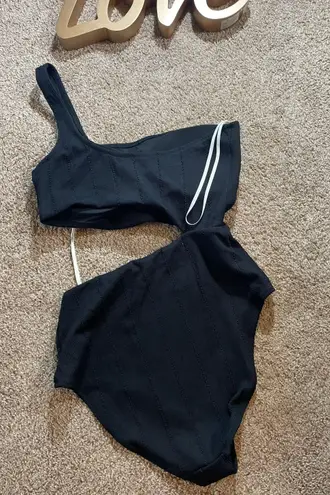 New Aerie Crinkle Asymmetrical Cut Out One Piece Swimsuit Size L HYGIENE STICKER ATTACHED It’s ALL... Show more
