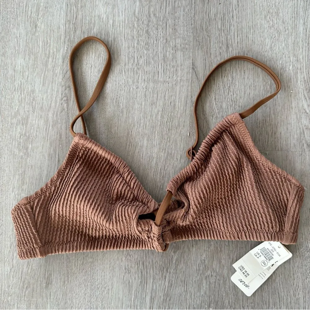 New! Women’s size small Aerie crinkle lace up bikini top. Brown ribbed material, connects in the bac... Show more