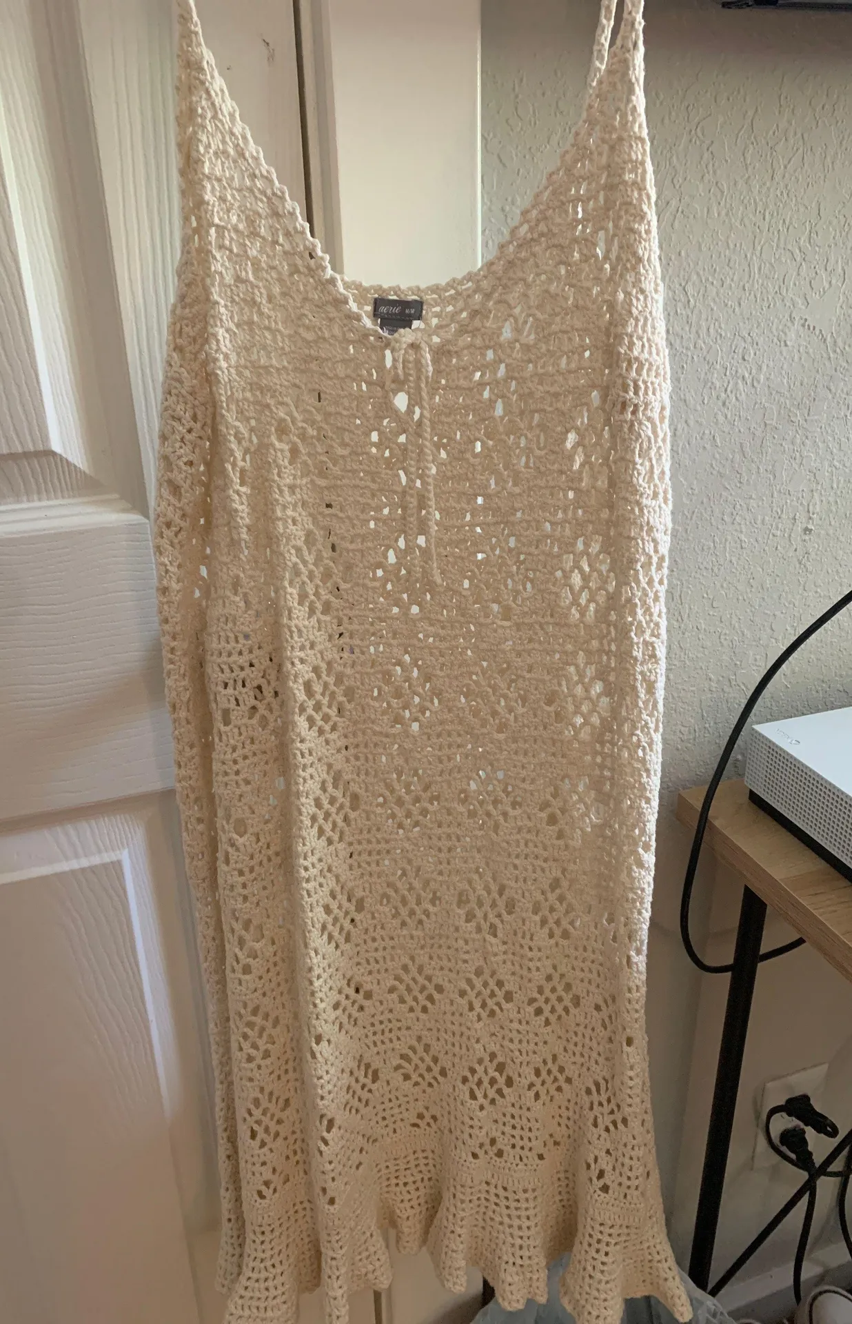 crochet swimsuit cover up, tanish color never used never worn great condition loosely fit