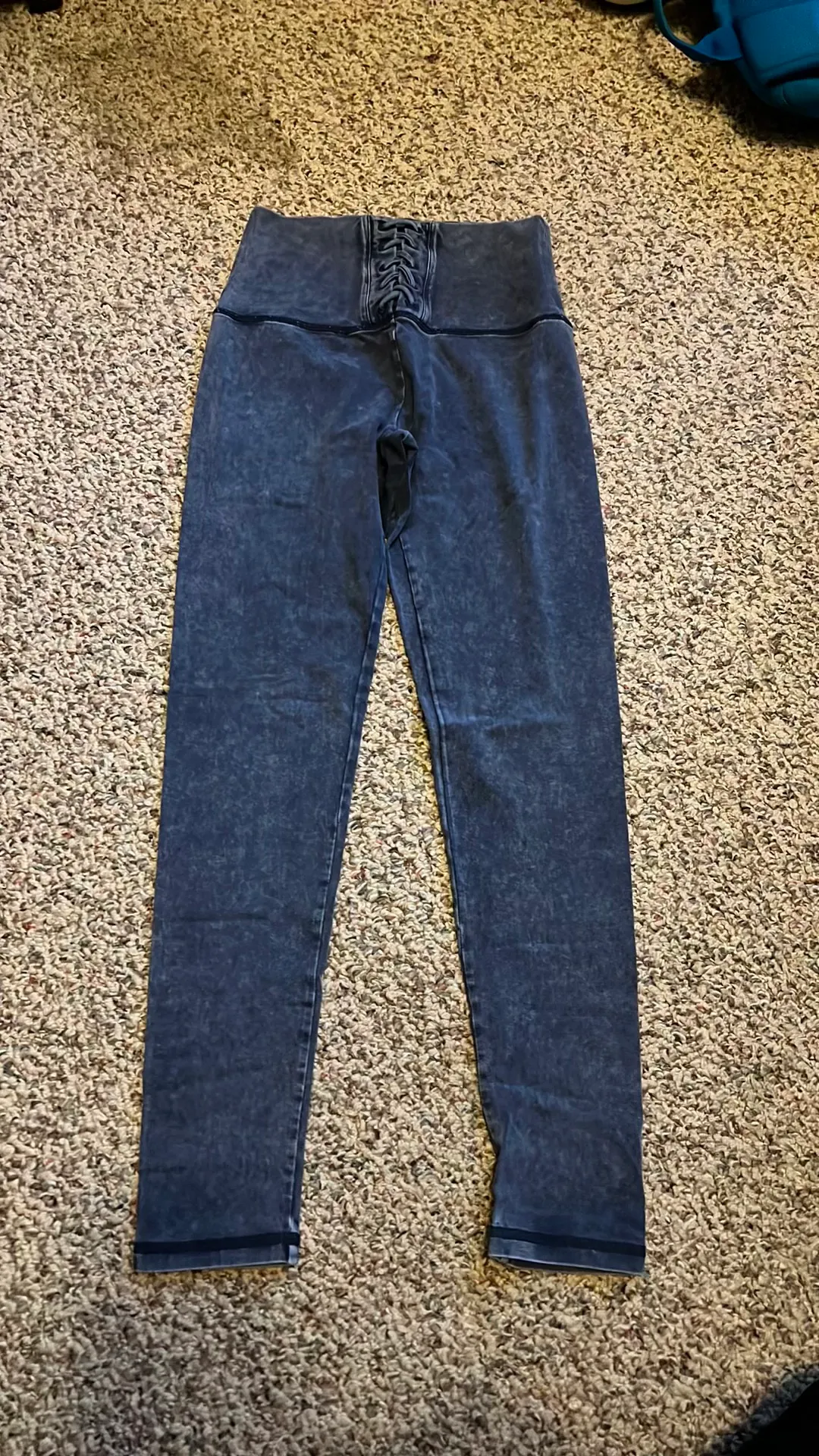 These have a denim style coloring to them. They are cotton leggings. Cute to just lounge around in.... Show more