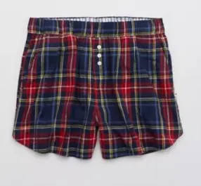 Aerie flannel high waisted boyfriend boxer. Navy, red, and yellow plaid