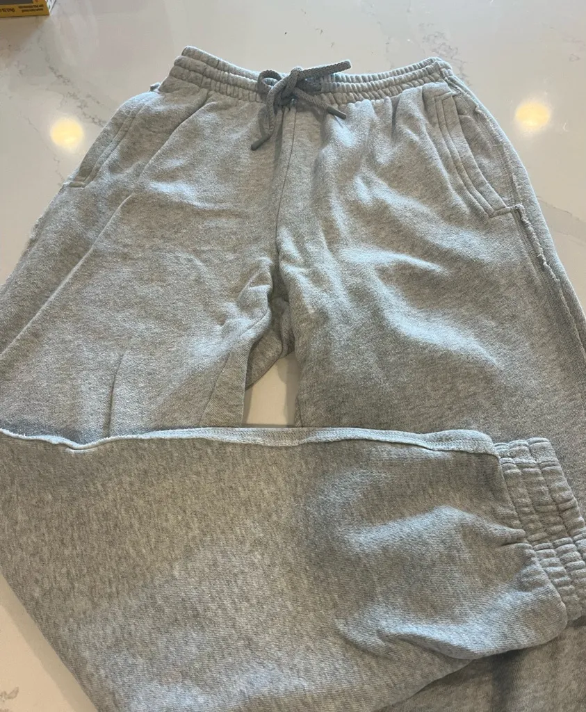 Gray aerie sweatpants, featuring a soft cotton blend and a relaxed fit. Has an elastic waistband and... Show more