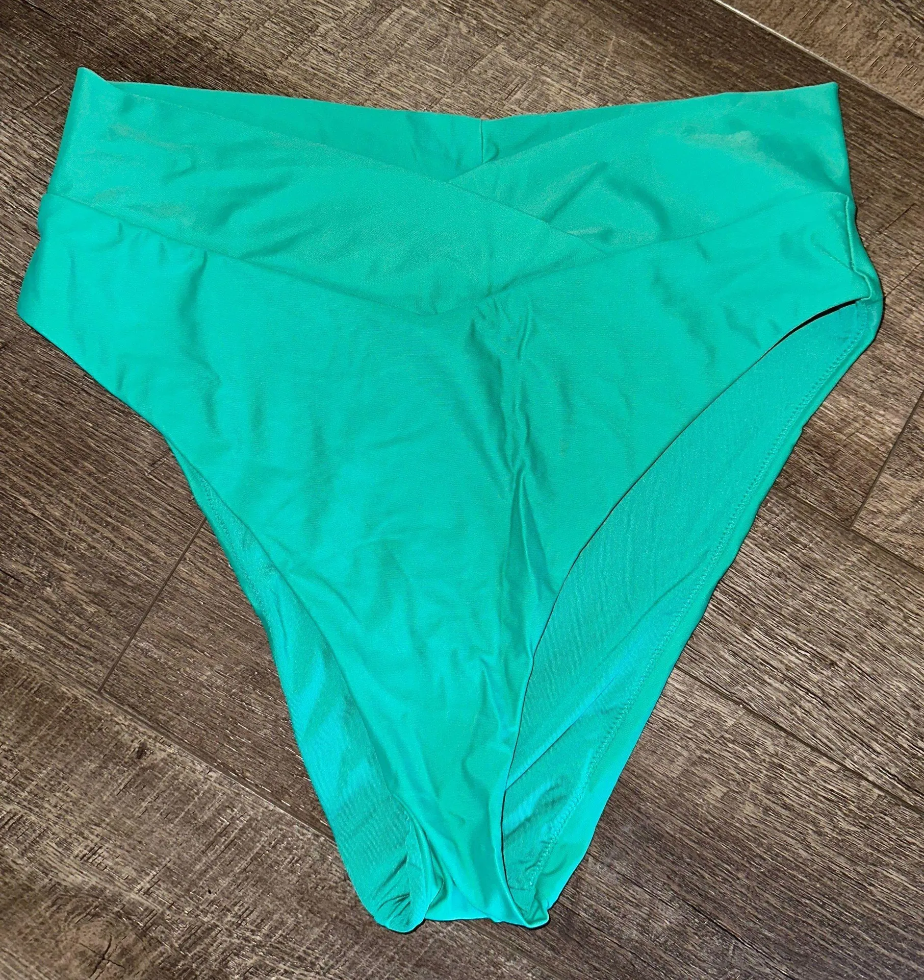 - high waisted, cross front, cheeky bottoms - aqua/teal color exactly as pictured - size XL - worn o... Show more