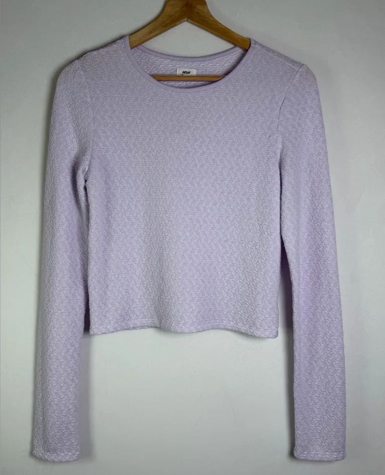 Elevate your everyday wardrobe with this Aerie textured cropped long sleeve top in a soft lavender p... Show more