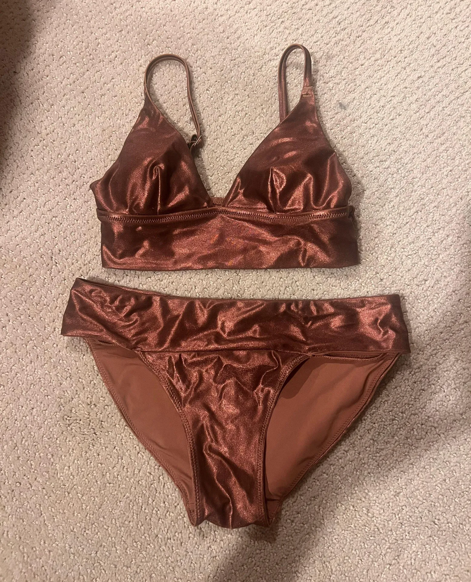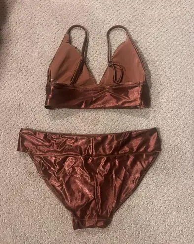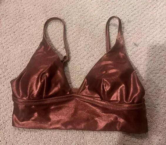 Aerie bronze metallic bikini. Size x-small triangle bikini top with adjustable straps and pads inclu... Show more