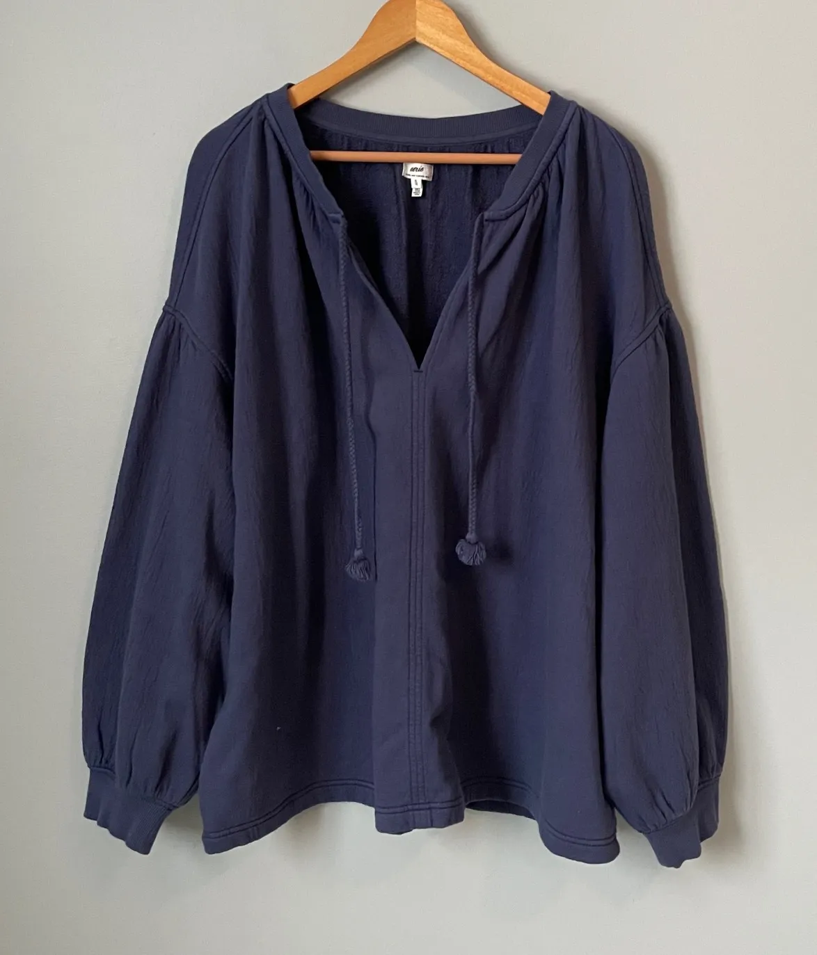 Discover effortless comfort and style with this Aerie navy blue sweatshirt. Its unique gauze texture... Show more