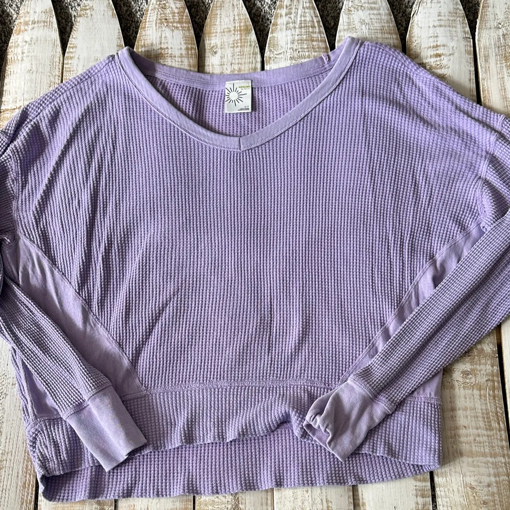 Aerie Off Line long sleeve v neck thermal waffle shirt size s purple thumb holes 93% cotton 3% Elas... Show more