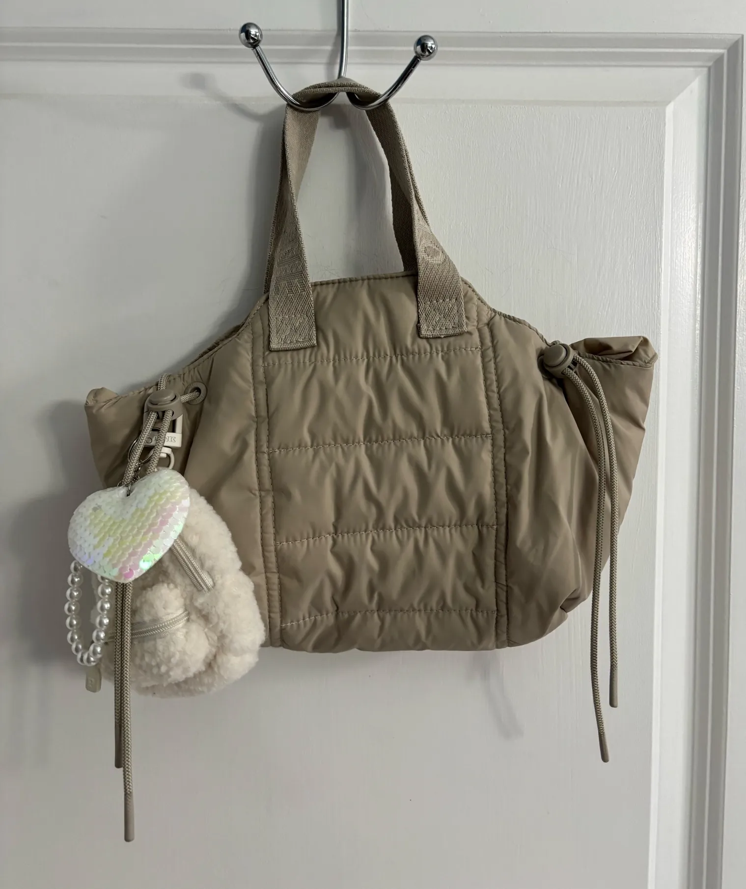 Aerie Offline Beige Tote with Heart, Pearl and Victoria’s Secret backpack Charms Tan - $40 New With Tags - From Chandra