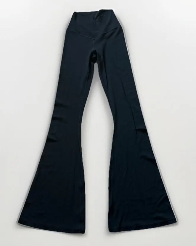 THE FIT: High waisted. 11" leg opening. Full length! Fit + Flare: hugs the leg until below the knee then flares out for a trendy look.