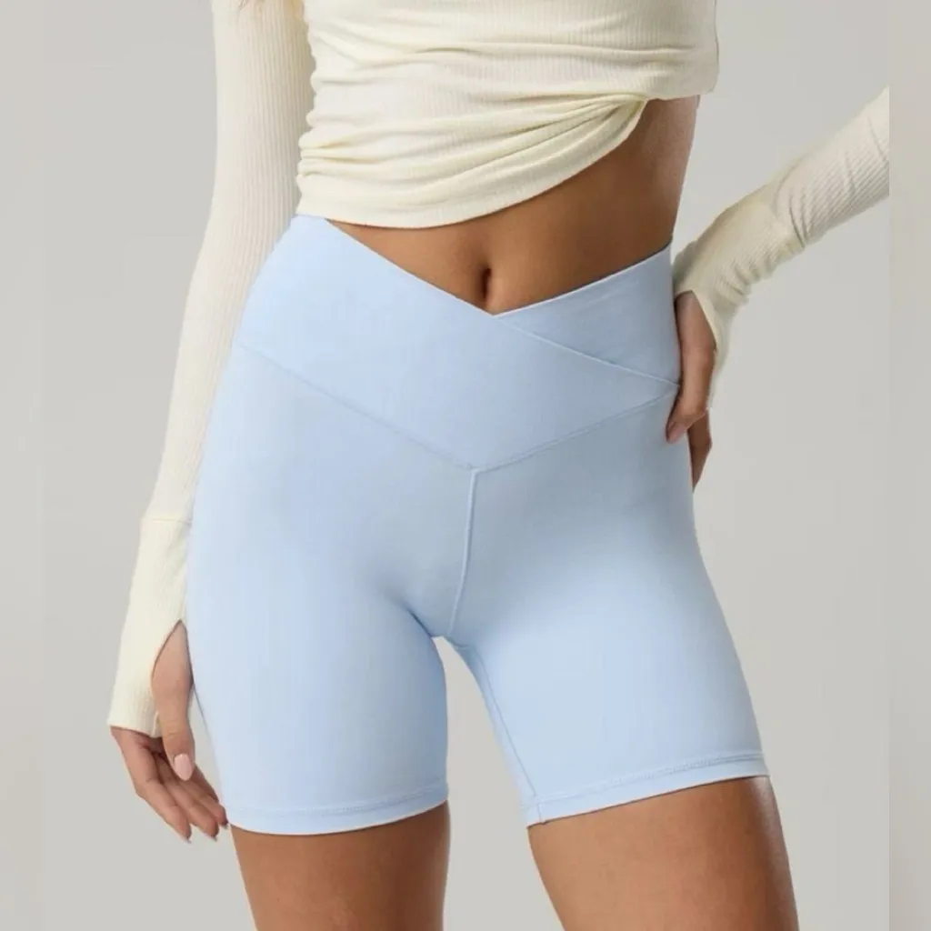 Condition: Excellent, no flaws Color: Light Blue Item Features: These high-waisted workout shorts wi... Show more