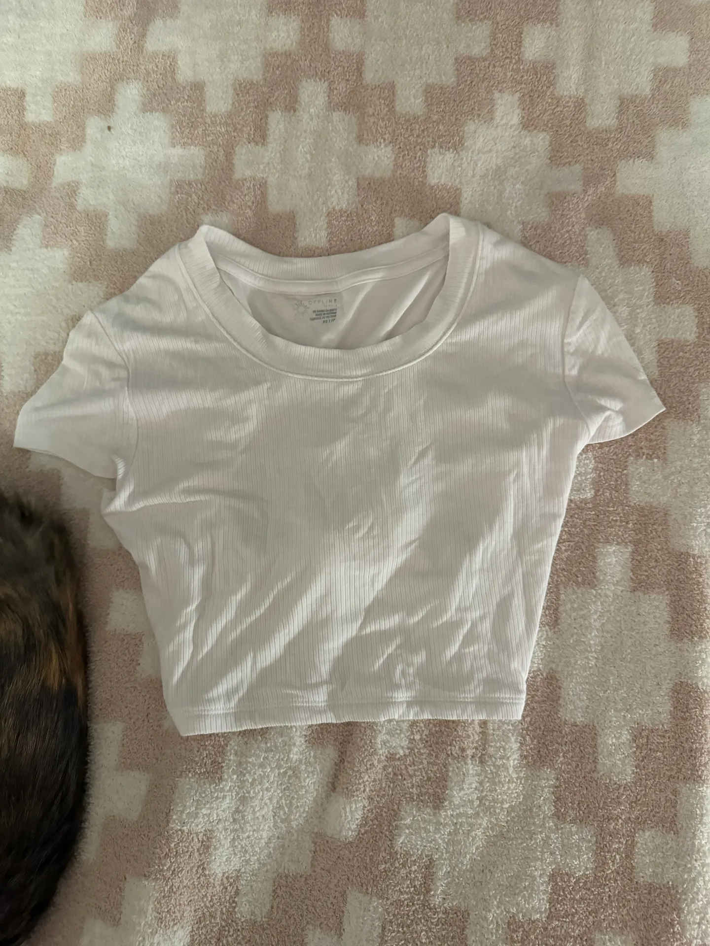 white workout top | soft workout material | never worn | a little see through | ties in back