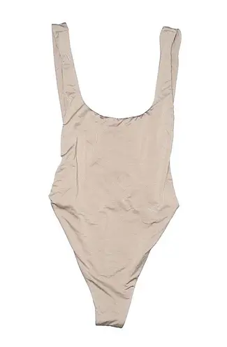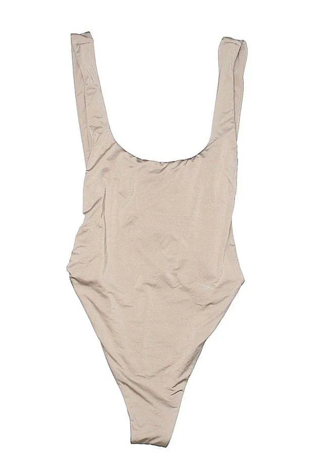 Tan, backless one piece. I wore it one time before quarantine hit and I grew out of it..