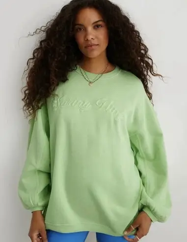 Aerie Oversized Crewneck Size S neon green “spring fling” embroidered on the front full length 28”... Show more