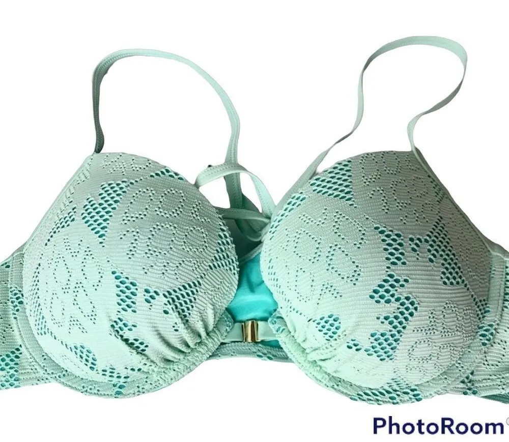 ✨ Aerie padded push-up pineapple crochet lace swimsuit bikini top Size: 36B Front closure hook... Show more