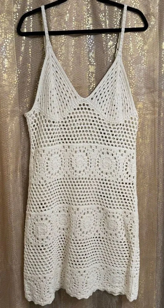 Aerie Party Coverup Knit Crochet Sheer Ivory Mini Dress XL NWT Brand new with tags, smoke and pet f... Show more