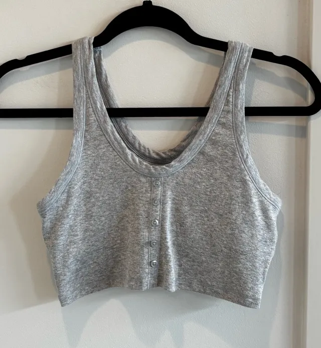 Aerie Pointelle Gray Longline Henley Button Tank Top Built in Bra Size Small - $16 - From Jena