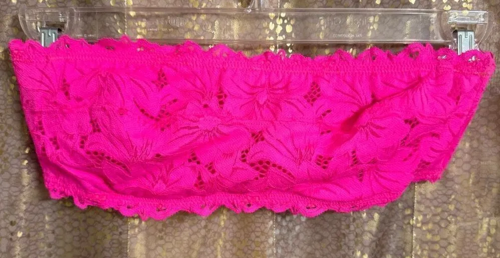 Aerie Real Power Beach Days Lace Unlined Bandeau Bra Neon Hot Pink 36B Brand new without tags. Smok... Show more