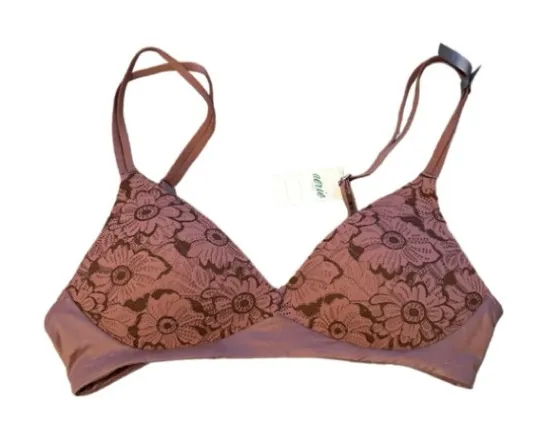 Aerie Real Sunnie Wireless Mauve Burgundy Floral Bra