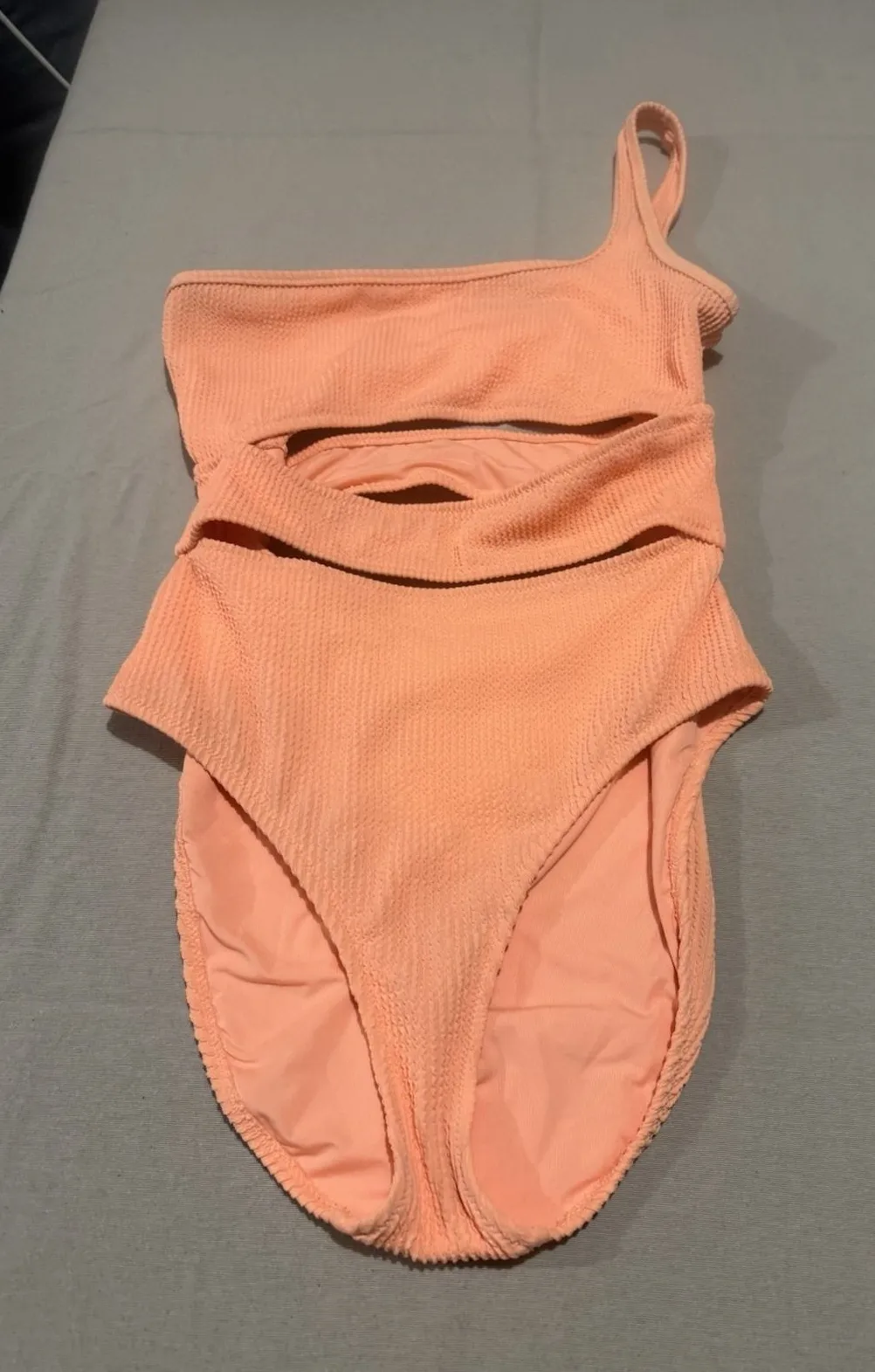 The Aerie Ribbed Cut Out Orange High Rise Cheeky Bathing Suit is a stylish and flattering one-piece... Show more