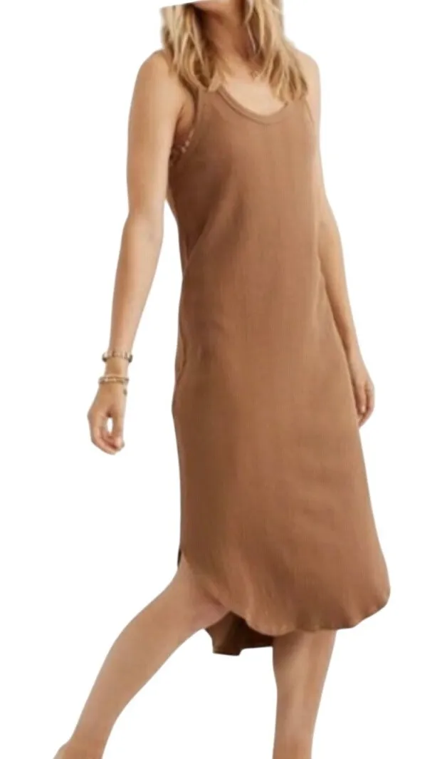 All orders shipped next business day. Aerie Ribbed Tank Dress Casual Sleeveless Midi Dress Camel Br... Show more