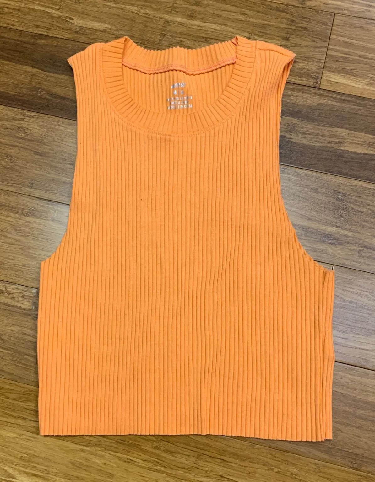 Aerie ribbed tank top in a vibrant orange hue. This sleeveless crop top features a classic crew neck... Show more