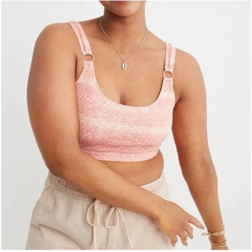 NWT AERIE Seamless Gold Ring Longline Ribbed Bralette Coral Pink. Built in bra. Super stretchy ribbe... Show more