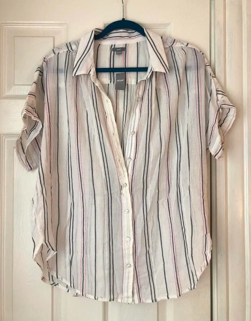 Brand new! Perfect beach cover up! Oversized. Cute navy + pink stripe details