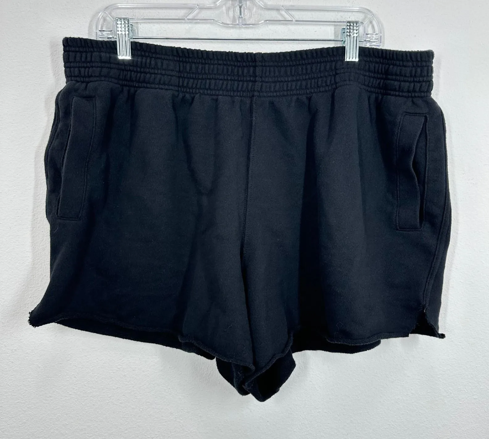 Aerie Size XL Classic Black Sweat Shorts Elastic Waist Pockets Raw Hem Relaxed Pre-Owned in Great Co... Show more
