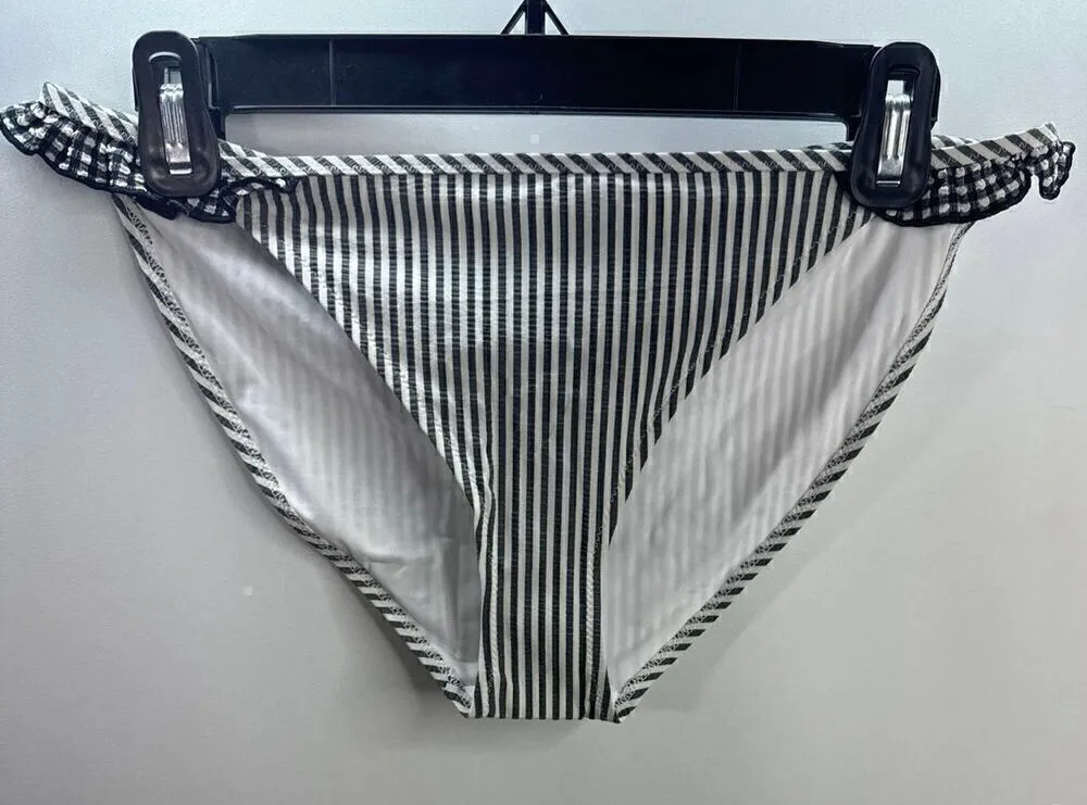 AERIE SWIMWEAR Women's Ruffle Accents Black White Stripes Bikini Bottom New With Tags Color: Bla... Show more