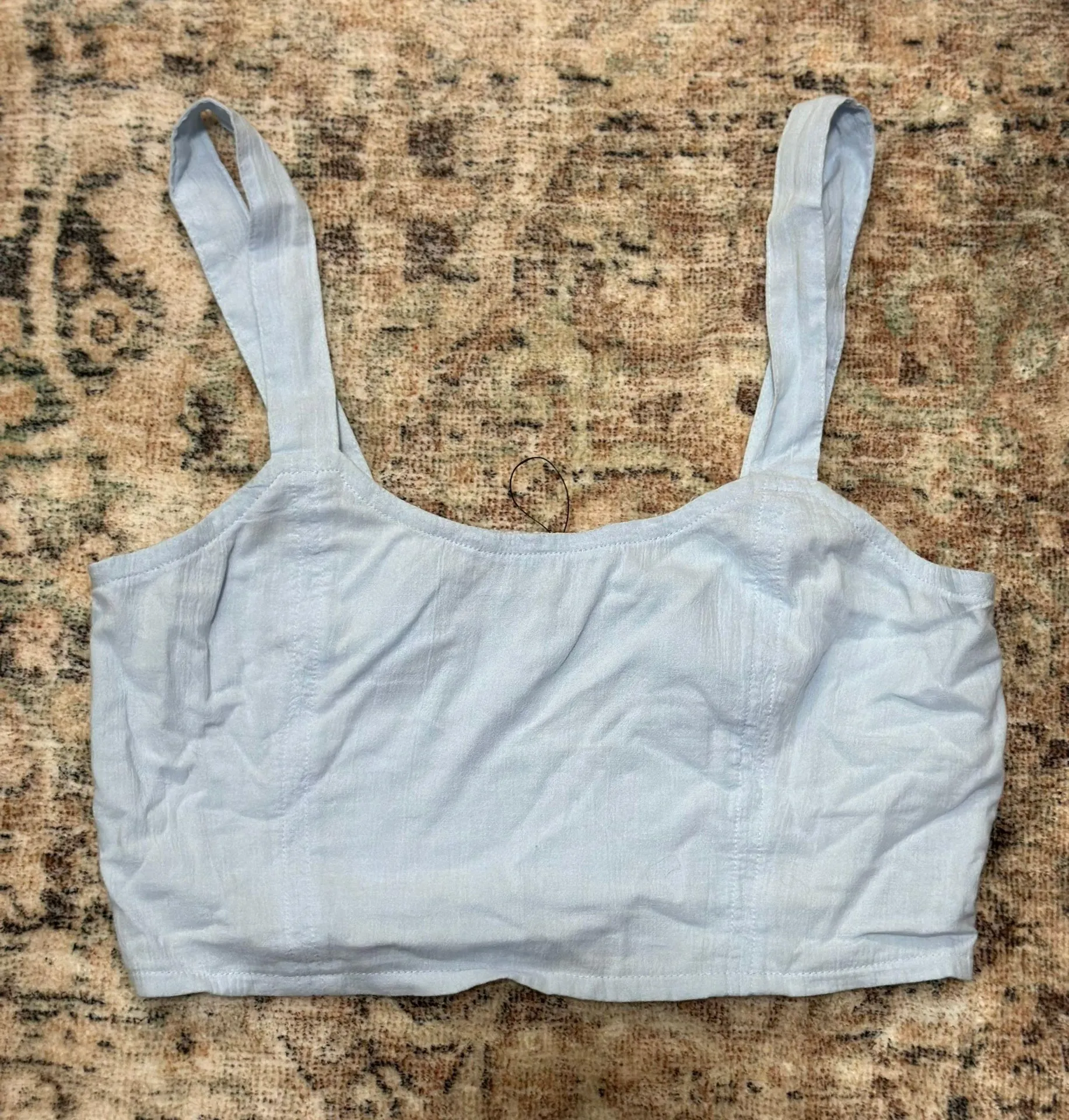 Aerie Cropped Woven Corset Tank Top Pastel Blue The back is elastic & the straps are adjustable with... Show more