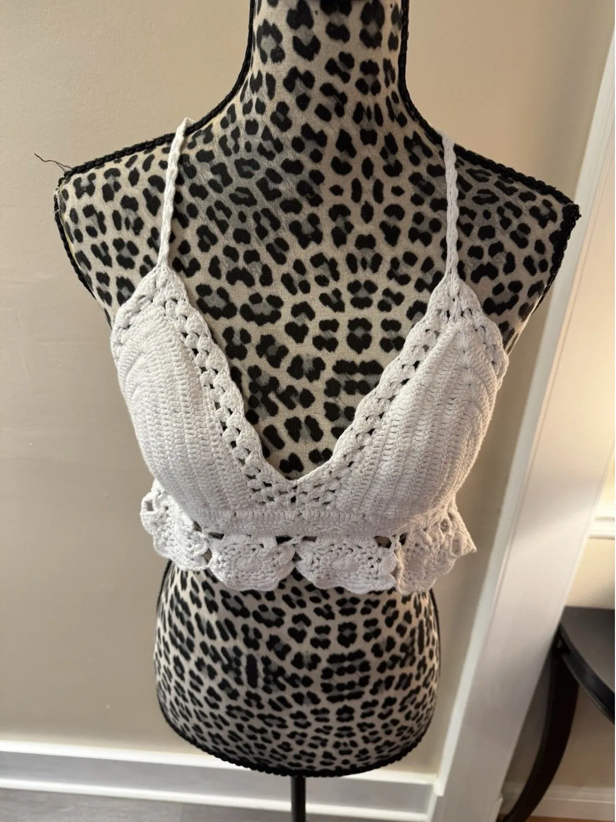 #20-3/1098-1 The Aerie White Boho Chic Cotton Crochet Beach Knit Crop Top in size L is a stylish an... Show more