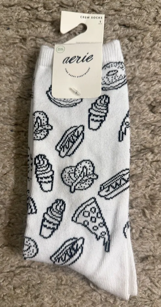 BRAND - AERIE STYLE - CREW Stylish Aerie crew socks. White with black food icons. Comfortable and t... Show more